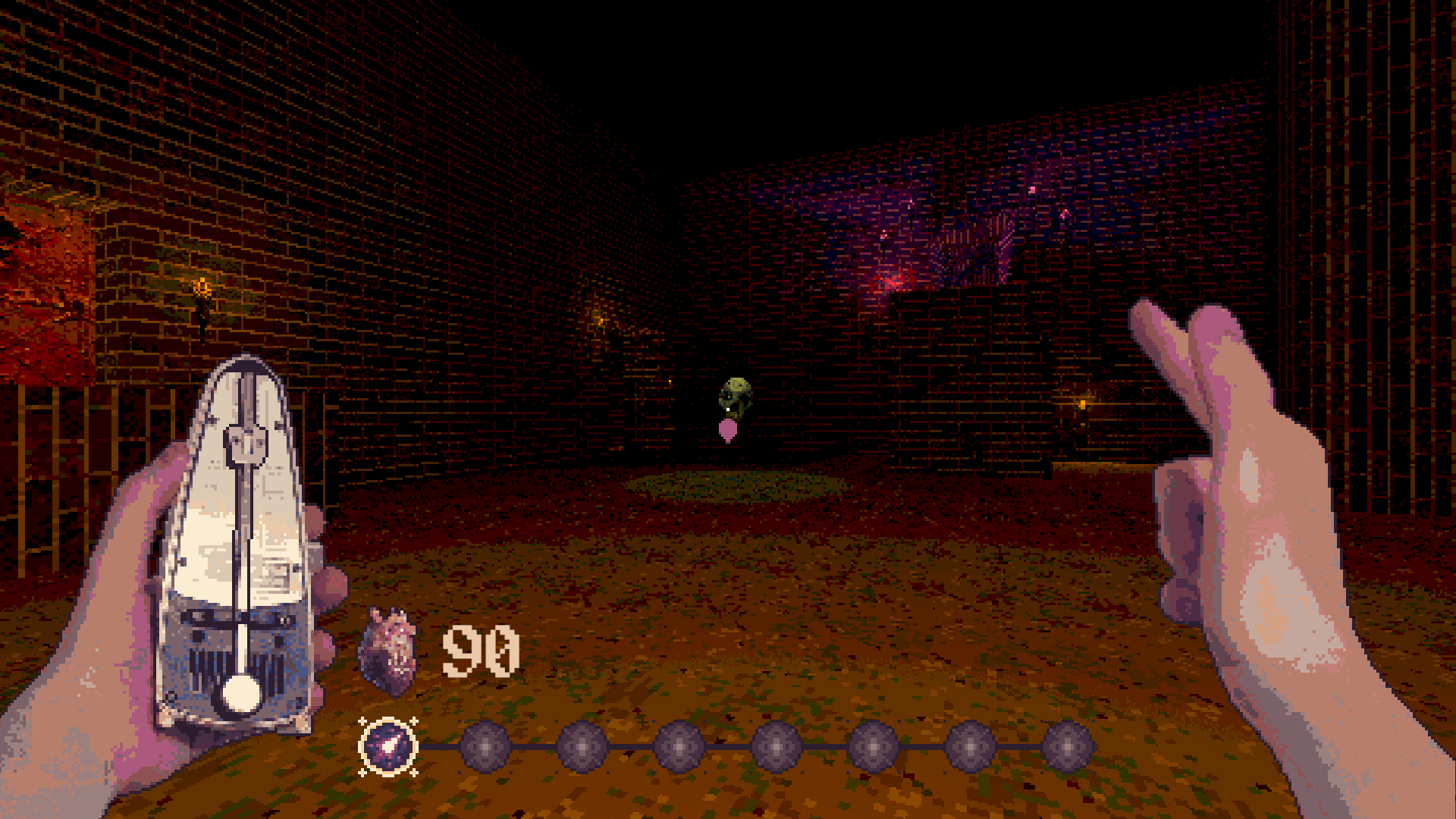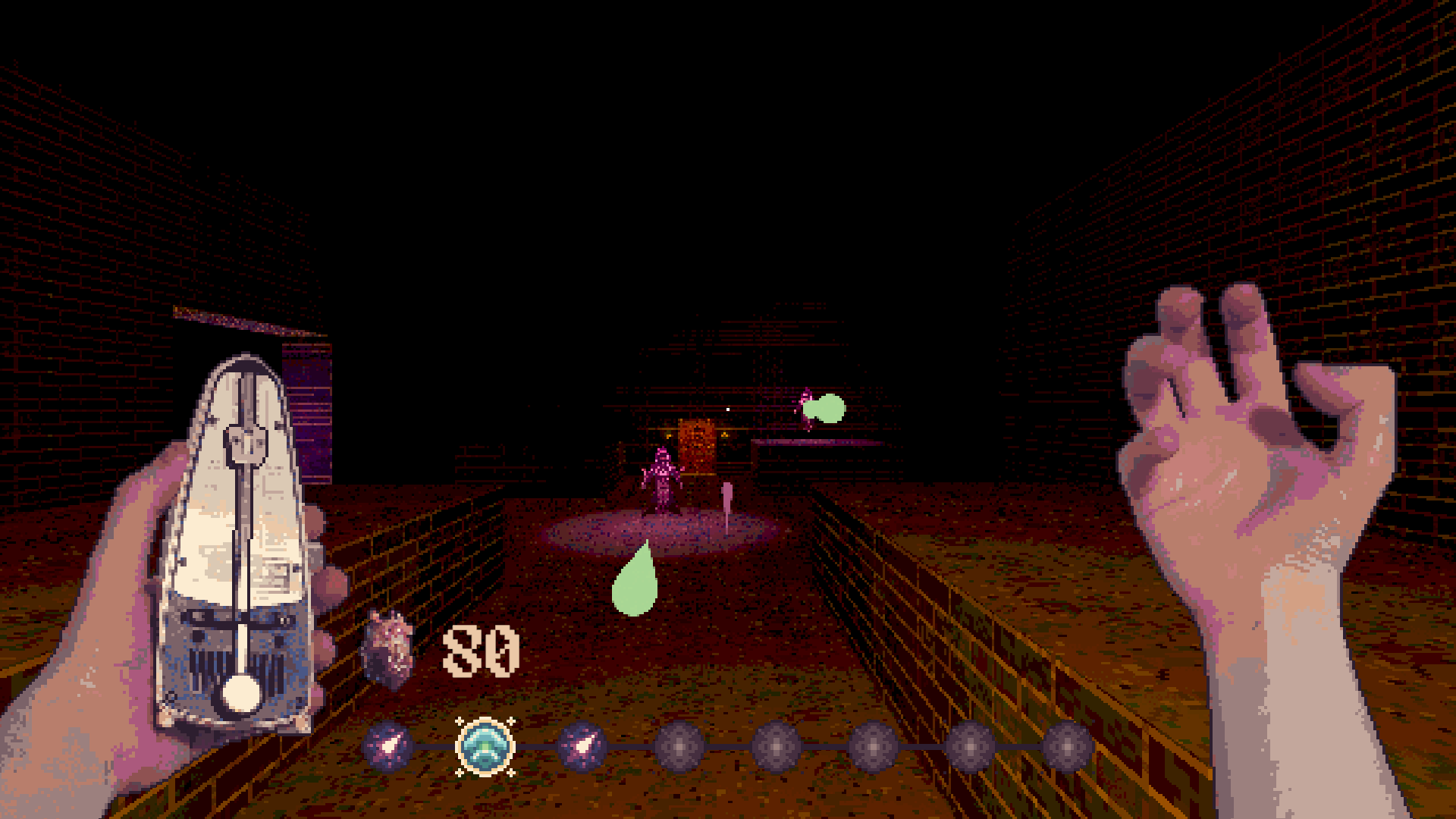 The catch is that they can only cast Spells in time to the Metronome's rhythm. Attach Spells to a looping bar of 8 beats, explore to collect new spells and defeat the dungeon's inhabitants to escape!